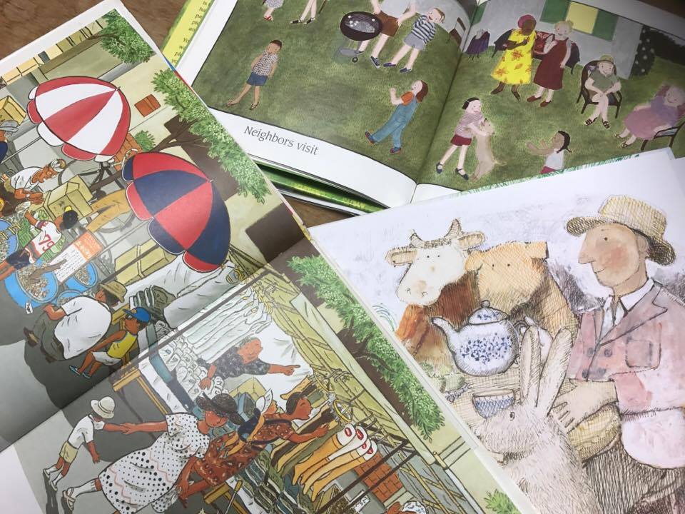 学校で絵本幻燈会やこどもたちの様子などを写真とともに